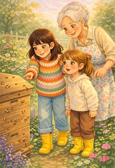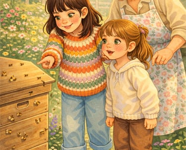 En el jardín de la abuela, Elga encuentra una abeja que ya no se mueve. ¿Qué le habrá pasado? Con la ayuda de la abuela, las dos hermanas descubren el fascinante mundo de las abejas, su trabajo incansable y por qué son tan importantes para las flores y para nosotros. 🐝 Próximamente disponible