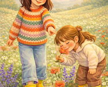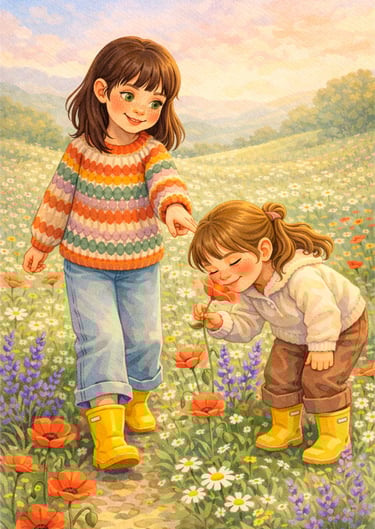 Greta y Elga acompañan a sus padres a una granja de flores por primera vez. Entre preguntas curiosas, descubrimientos sobre bulbos y semillas, un picnic en el prado y una visita a casa de la abuela para plantar juntas, este sábado de primavera se convertirá en uno de esos días que no se olvidan. 🌸 Próximamente disponible