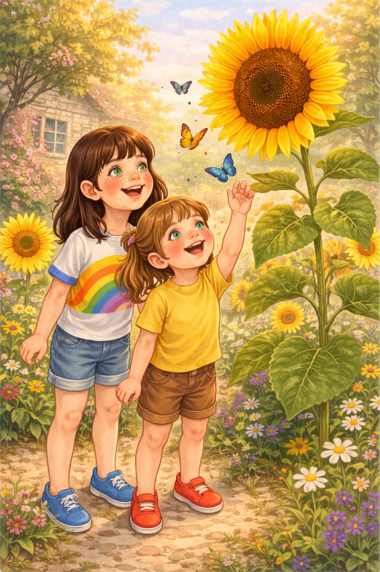 El verano ha llegado a casa de la abuela y con él algo maravilloso: los girasoles se han abierto del todo y el jardín está lleno de mariposas de colores. Greta y Elga descubren que la naturaleza tiene sus propios ritmos, y que vale la pena pararse a observarlos. 🦋 Próximamente disponible